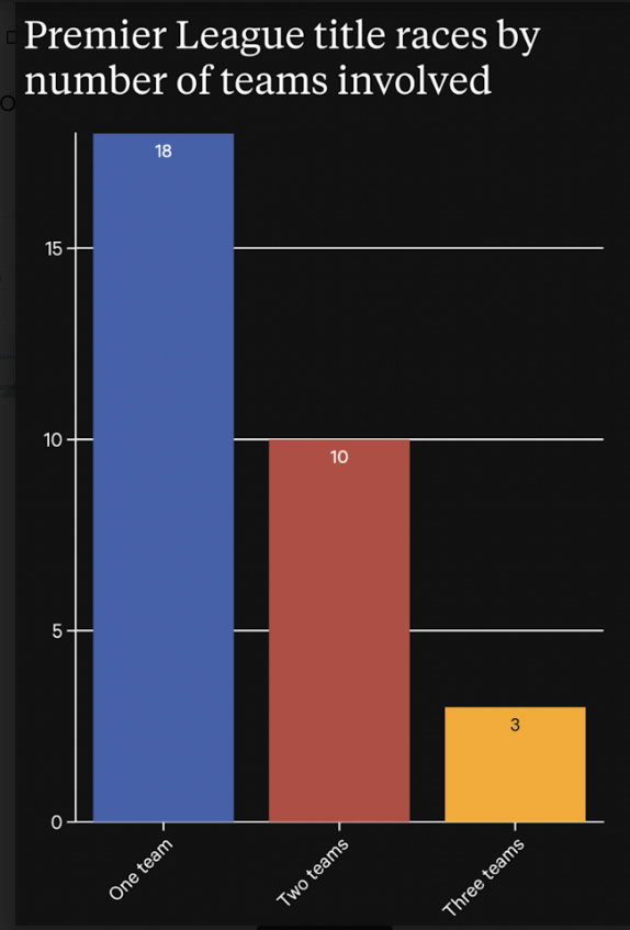 還有1/4賽程要走,還有未定論,而歷史數據卻暗示著,也許今年英超會有最棒的一次3隊爭冠故事 Three-team title races really start from here