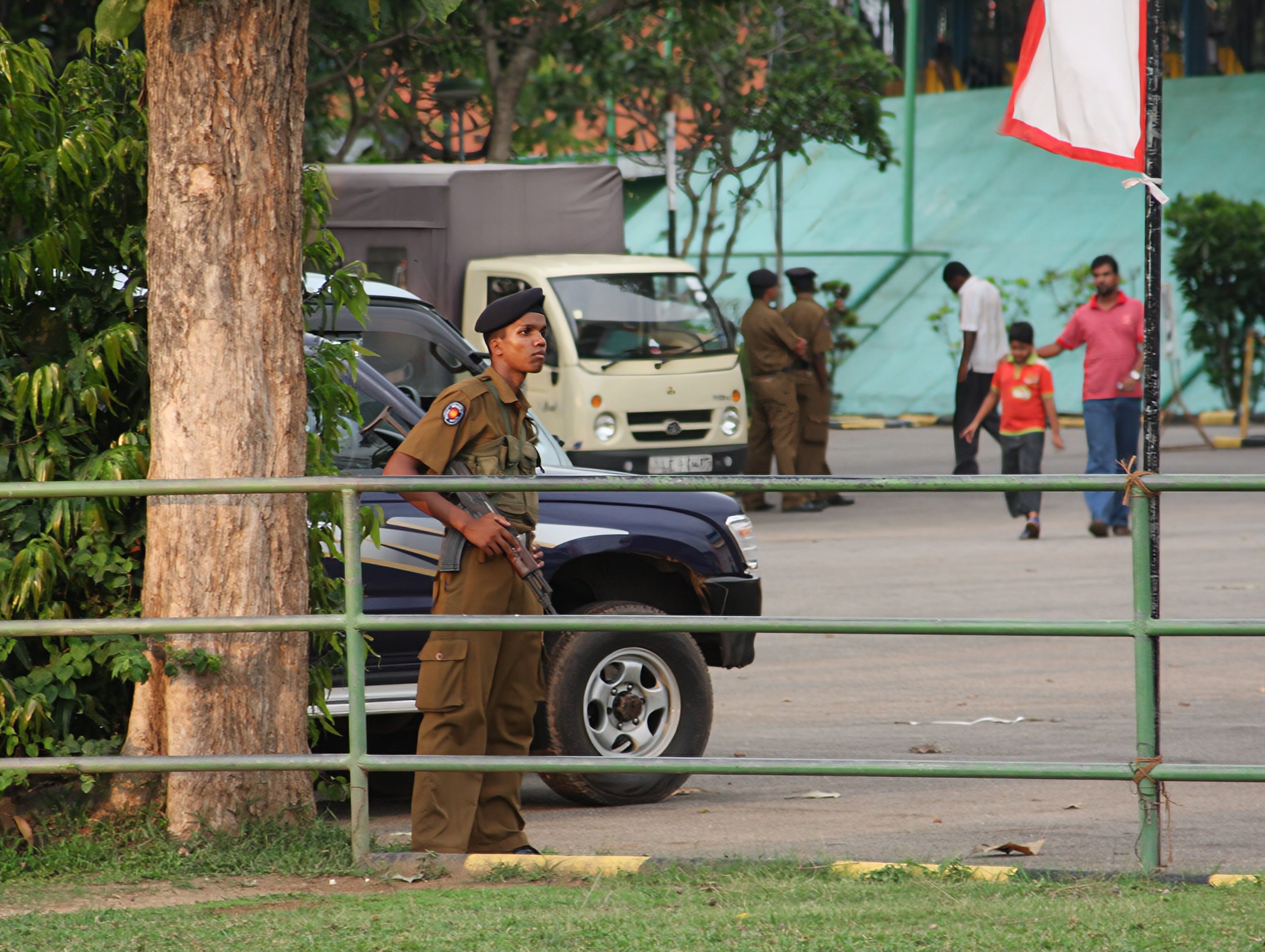 2009年斯國全境仍處內戰狀態,政府軍經過30年剿共,幾乎要大獲全勝,然而市區內還是三步一崗亭、六步一檢查哨,公共巴士、私家車行經幹道、大橋下都必須停車被檢查,好像春安專案時各地查勤臨檢的警察那樣,就像24小時不間斷的酒駕臨檢,但氣氛更嚴肅,而且軍警只盤查一種人→泰米爾人(Tamils)