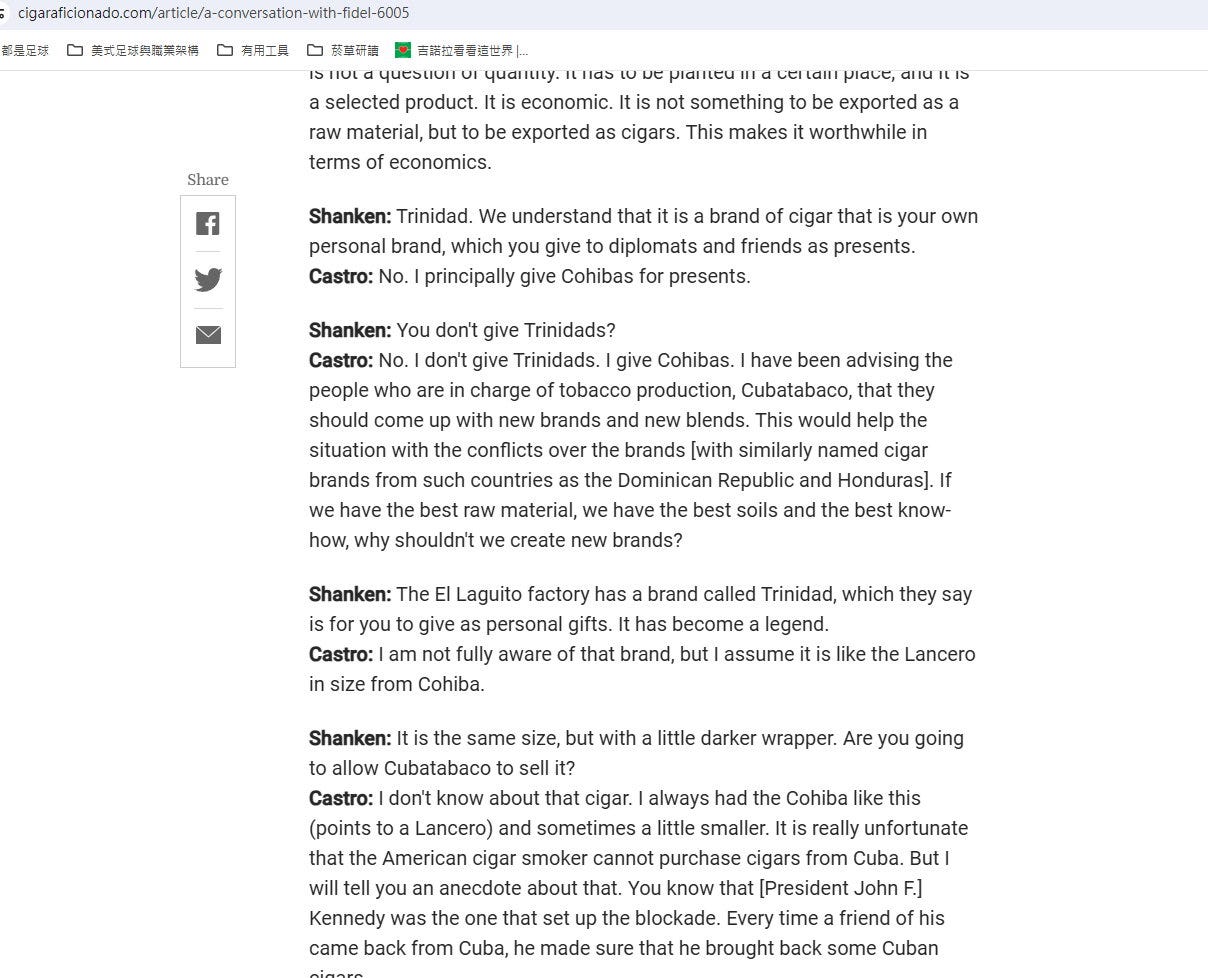 千里達這牌子真的是強人卡斯楚「御用」送禮的嗎?很明顯的不是!當年雪茄雜誌Cigar Aficionado 破天荒採訪到卡斯楚本人,一系列對話中,卡斯楚自己都不知道這牌子是什麼