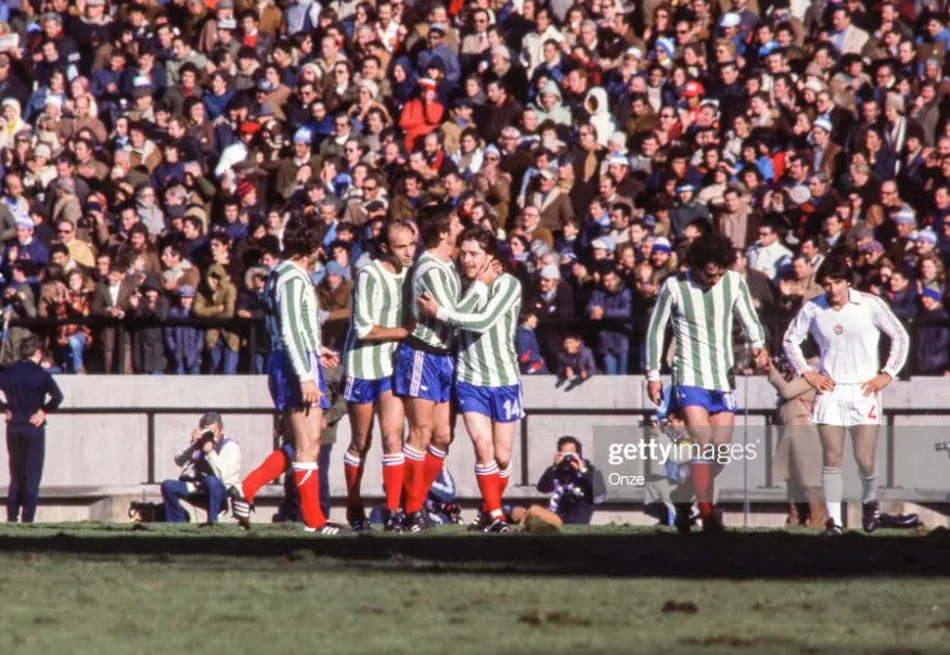 那是1978年世界盃賽事,距離國際足總(FIFA)完美執行規章、讓「撞衫 (kit clashing)」徹底絕跡還有25年,彩色電視普及也要等上幾年之後,兩國代表隊攜帶同顏色系衣服進球場,這下完 蛋 了 !