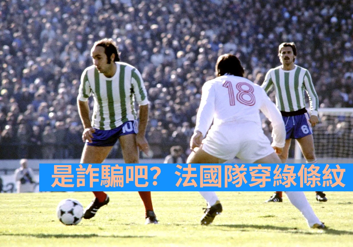 各級法國隊主色調向來都藍色,直到1978年世界盃法國參賽這屆,其實本屆的回憶並不美,取得唯一1勝居然還穿綠白色條紋制服!!綠色法國隊??可不是什麼法式新潮設計,因為這件球衣居然是「隔壁鄰居」臨時借的。