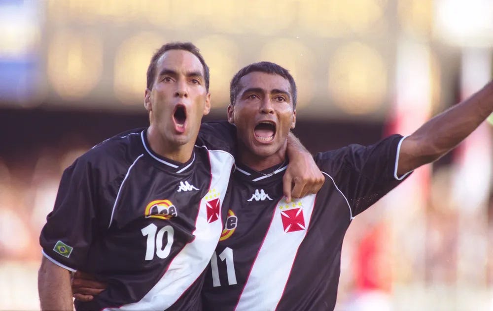 1995年的Edmundo與Romario正麻吉著,2人生涯都是歐洲球界都認為難相處、難合群,巴西球界視他們也不算什麼好隊友,可2人早年自認識竟一拍即合,交情好得很。這2人信心滿滿要幫Flamengo踢入盡可能最多進球,還聯手發表了一首單曲(Rap dos bad boys)按這裡 聽。