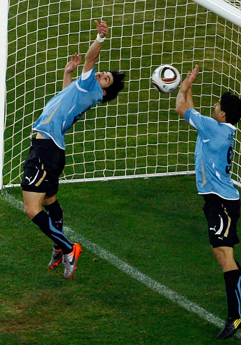 照片還原歷史,蘇亞雷斯身旁有個烏拉圭人也試圖手球,只是他反應慢了,伸出手卻沒打中球,那是Jorge Fucile ,他還是「先出手的」,預想的就跟蘇亞雷斯一致:寧願罰一個PK也不能吞一個第120分鐘絕殺,然後讓數百萬國民哭上四年,但他沒“得手”。