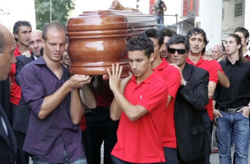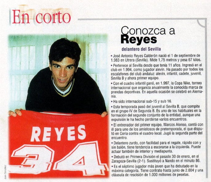 拉莫斯跟Jesús Navas在青訓期的學長、José Antonio Reyes年僅20歲就穿上10號王牌球衣,他的天賦超級好,梯隊學弟的偶像,兵工廠總教練溫格重金買下他,卻沒踢出代表作,他堅稱從沒習慣英國的天氣,媒體對他也不友善,生涯雖然奪下5座歐霸(馬競2次、回到塞維利亞3次),對比他的天賦會覺得他生涯沒什麼發揮過,30出頭後就遠離頂尖足壇,像是多數未成年天才少年球員的生涯曲線,直到他…車禍身亡消息傳開。