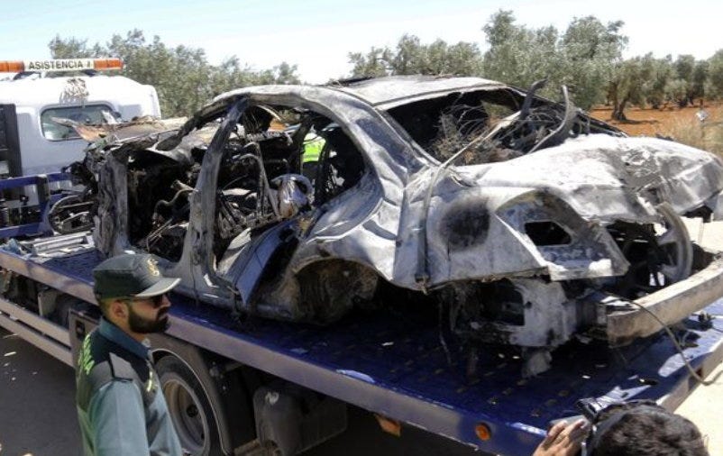José Antonio Reyes 開著帥氣跑車、帶著堂弟們在國道上飆車,車速超過180(一說是超過200KMH)時爆胎翻覆火燒車,釀成2死悲劇,