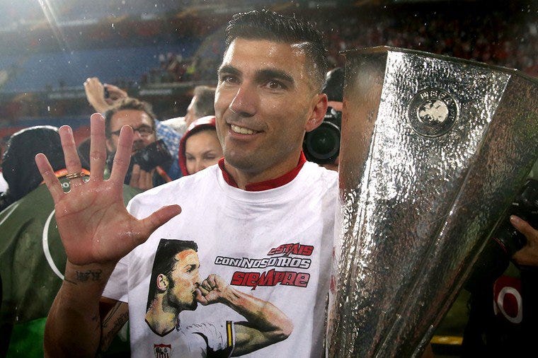 Jesús Navas 跟Ivan Rakitic 二位老將舉起幾天之前騎馬出意外Sergio Rico的球衣,在奪得第七次歐霸聯賽(包含前身的UEFA CUP)後,7進決賽7次勝出的塞維利亞再次證明這項賽事獎盃專屬他們,而且塞維利亞的孩子們仍然「多災多難」。