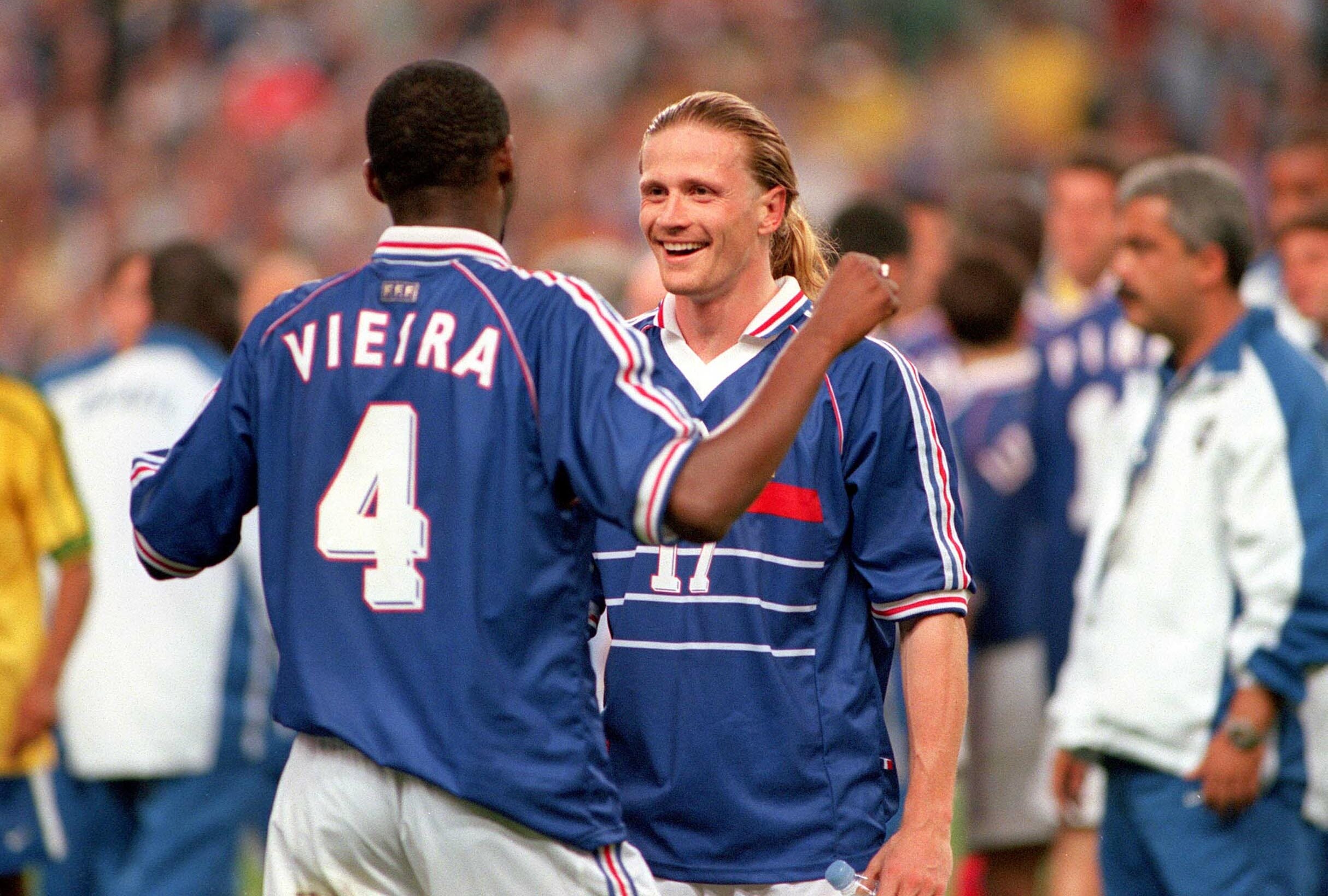 馬尾金髮Petit在法國墮落的90年初期已是主力防守中場,有他助陣下法國取得1998世界冠軍,2000歐洲冠軍,席丹跟他讓法國隊中場厚實堅強,他更是英超最好的防守中場之一,這樣成績應該算是世界名將了吧!然後時任巴薩教練居然問他踢什麼位置??