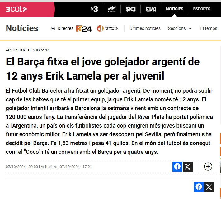 Camarda 並非第一個青訓孩童刷出變態數據的,歐冠豪門中幾隊都產過這類奇才,有些成功變身巨星、有些只活在記憶裡。巴薩同期出過兩個天才,日本人久保建英跟Ansu Fati 在小學時搭檔可以1季踢進130個球,目前看他們倆,技術成分依舊是天才等級,但就還不到「phenomenal」等級,這說明天才孩子可以很多,靠天分吃到世界最頂仍然很少