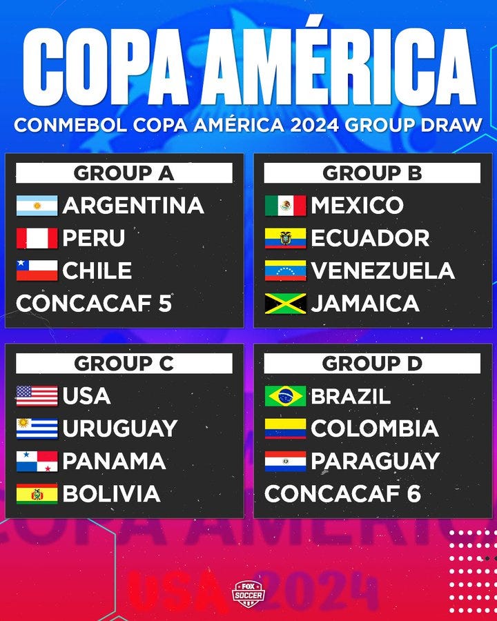 巴西與哥倫比亞抽在同組,本身就是硬仗,但想想阿根廷一路上沒有強敵,巴西這頭卻得「吃全餐」、碰上賽會最強的2個二種子(甚至得交手到2次),要說不羨慕也難,特別是美國墨西哥雖為北美地區強權,事實上2國近年並無進步,結果預賽踢完,美墨竟全部淘汰,使得美國成為美洲盃啟動輪流主辦制以來(1987開始)第一個預賽掰掰的地主隊。