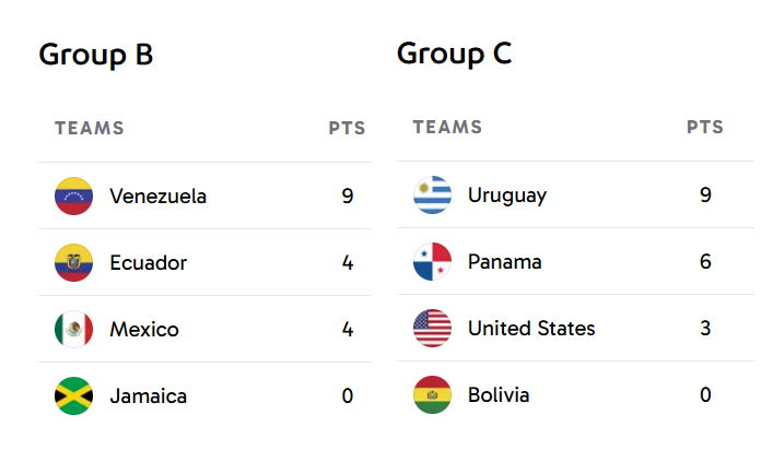 Group C: 美國, 烏拉圭, 巴拿馬, 玻利維亞