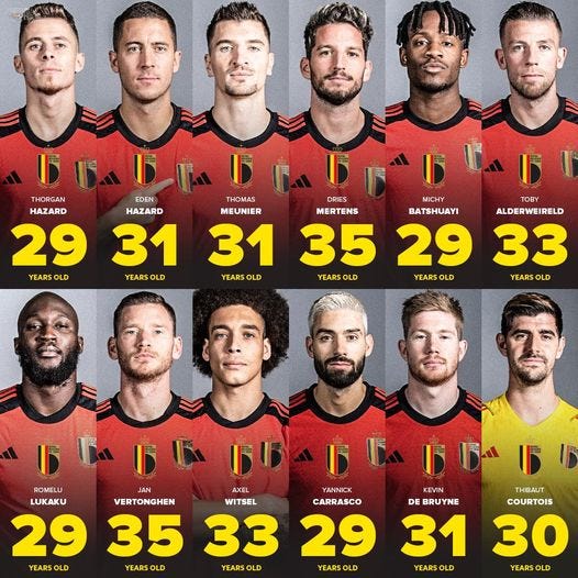 無疑地比利時擁有一個黃金世代,人口僅過千萬的小國,突然間擁有大量好球員,幾個更是世界級球員,有著Eden Hazard, 德布勞內、盧卡庫、守門員Courtois,他們崛起時銜接上穩固後防線的 Kompany, Jan Vertonghen, Toby Alderweireld,每個位置都有能征善戰好手,在2014初登場,在2018拿下世界盃季軍,等2022世界盃小組賽都過不去、2024複賽無生機的出局,讓人感嘆一個豐收的世代就這麼結束,而且什麼都沒贏下。