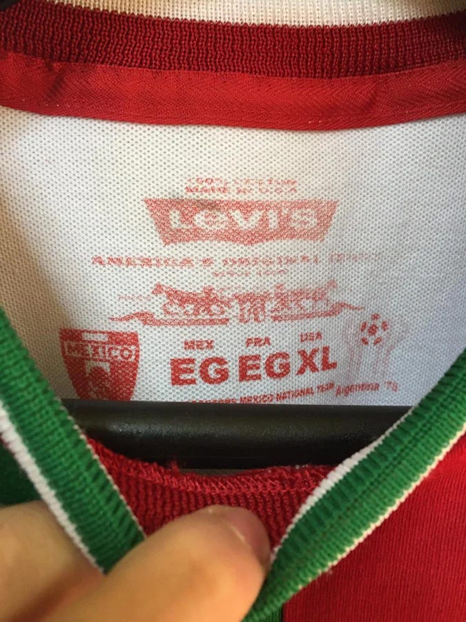 那一屆墨西哥代表隊擁有很不尋常的球衣贊助商,這是牛仔褲的大廠Levi Strauss&Co.,簡稱Levi's,按照官方給的資訊,Levi's報給墨西哥足協的價碼「非常吸引人」,最終開啟了這個合作,那是不流行、不方便收集球衣的年代,也讓這件衣服成為收藏家的逸品。