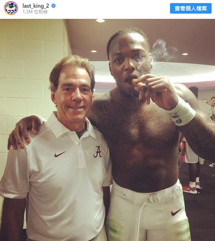 體育迷都知道雪茄與「勝利(Victory)」,好比賽車頒獎典禮要噴香檳,不分球類項目,奪冠後的慶祝總少不了雪茄,慶典儀式中世人看過雷霸龍抽、看過Curry抽、看過喬丹抽食雪茄,只不過阿拉巴馬-田納西每年對決戲碼裡,不僅僅是勝方教練、球員會點燃雪茄慶祝,場內觀眾到電視機前的球迷也會,這項傳統已超過60年,說它是「Viciory Cigar」的象徵代表都不為過。