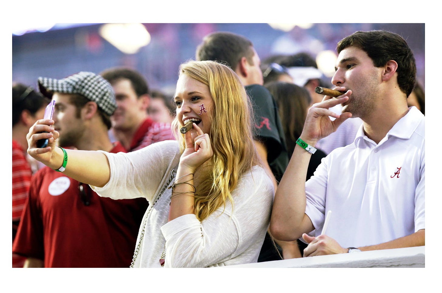 對於美國雪茄客來說,每年「阿拉巴馬-田納西對決」戲碼更是不能錯過,因為賽後獲勝的一方支持者,除了大肆慶祝、還會「無差別」點燃雪茄吸食慶祝。他們甚至邊抽邊衝進草皮