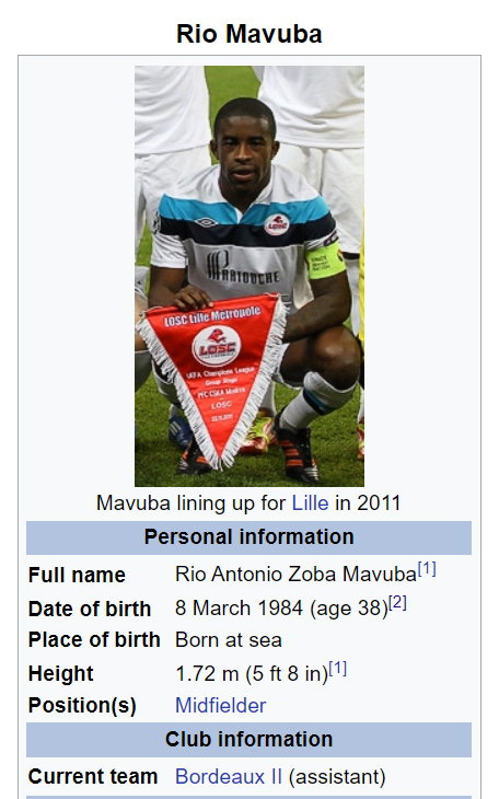 談到出生地,不得不提到前幾屆的法國中場好手Rio Mavuba,在北法Lille成名的他,跟比利時好手Eden Hazard曾並肩作戰奪下法甲冠軍,也成功選入2014年巴西世界盃代表隊,不同於近年大量出現的「海外出生球員」,Rio Mavuba是在「海上出生」。